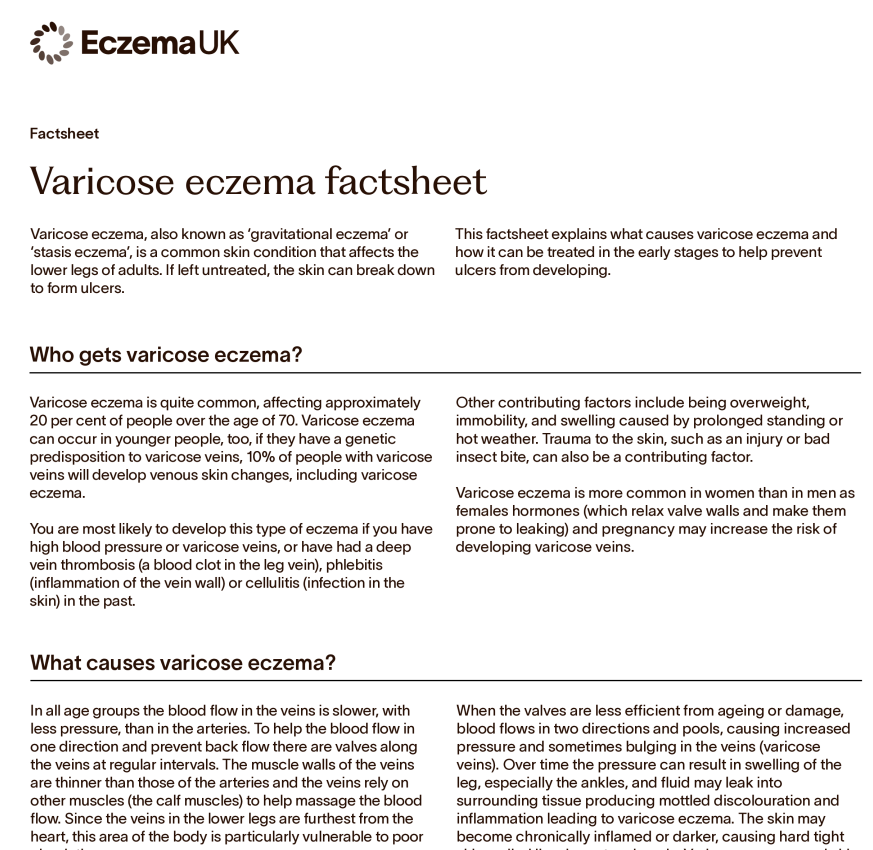 Varicose eczema, also known as ‘gravitational eczema’ or ‘stasis eczema', is a common skin condition that affects the lower legs of adults.
